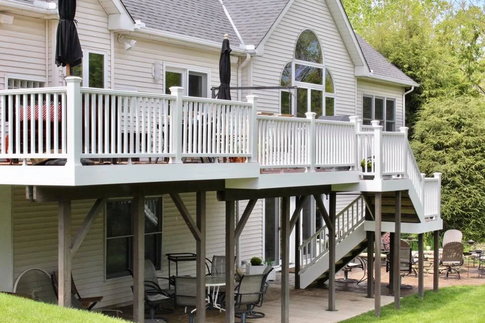 We replaced this customer’s old wood deck with maintenance-free Trex composite decking. This eco-friendly deck made from recycled materials is fade, stain, scratch, and mold resistant. Let us build you one to enjoy with friends and family for many years to come!